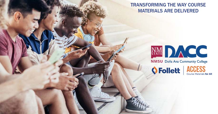 Skip to main content Doña Ana Community College Program Overview DACC brought the Books 4 Less program to campus in Fall 2022, making it easier for students to access required course materials. By partnering with the DACC Bookstore, students get all required print and digital materials for a flat fee of $28 per credit hour. Materials are available up to 10 days before classes begin, helping students arrive prepared and stress-free. Students can opt out of the Books 4 Less program (opens opt-out portal) if they prefer to purchase materials independently before the census date. Monitor your NMSU email for semester-specific course material updates. Campus-Wide Access All students have access to course materials on the first day of class. Digital materials are integrated directly into Canvas for instant access, while physical materials are available at the bookstore. Charges are included with course registration, offering predictable costs and cost savings. This program supports course success, reduces withdrawals, improves retention, affordability, and equity by ensuring all students have the same materials from day one. Digital — via Canvas Digital materials are integrated directly into Canvas for instant access on any device, including iPads from the DACC Apple Xcite Initiative. Physical — at the Bookstore Print materials are ready at the bookstore up to 10 days before classes start, so you never fall behind. Predictable Costs Charges are included with course registration — no surprise expenses or delays mid-semester. Equity & Retention Supports course success and reduces withdrawals by ensuring every student starts with identical materials. Student Testimonials From Fall 2025's Follett Feedback Survey: I really like how being a first-year student this process made it super easy to figure out how to get my book and helped me focus my funds towards paying for my dorm. I would rate the overall success of the Campus-Wide Access program positively. It made textbooks more affordable and easier to access for students, reducing financial stress and ensuring everyone had the materials needed from day one. 10/10 it gives students the textbooks required for class and makes the process of getting them easier since we can choose online material. Program Results Important Points to Know Additional Info on Books 4 Less Please email 2219mgr@follett.com and we will get back to you within 48 hours to assist. This program puts students in control of their course material charges. If you evaluate all the items for all of your classes and determine that you wish to opt out of this program, you may do so by logging in to this portal with your NMSU email: accessportal.follett.com/2219 (opens Follett opt-out portal) If you opt out, you must find and purchase all items needed in all your classes yourself. You may be subject to sales tax, shipping and handling, delays in order processing and fulfillment, as well as additional stressors. Students have until the official census date each semester to opt out of the course materials fee. For more information, visit our FAQ page below.Transforming the way course materials are delivered.